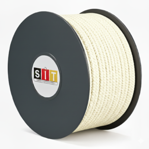 Empaquetadura económica de fibras acrílicas lubricadas con teflón para uso en productos que requieran resistencia química y no contaminación por color.